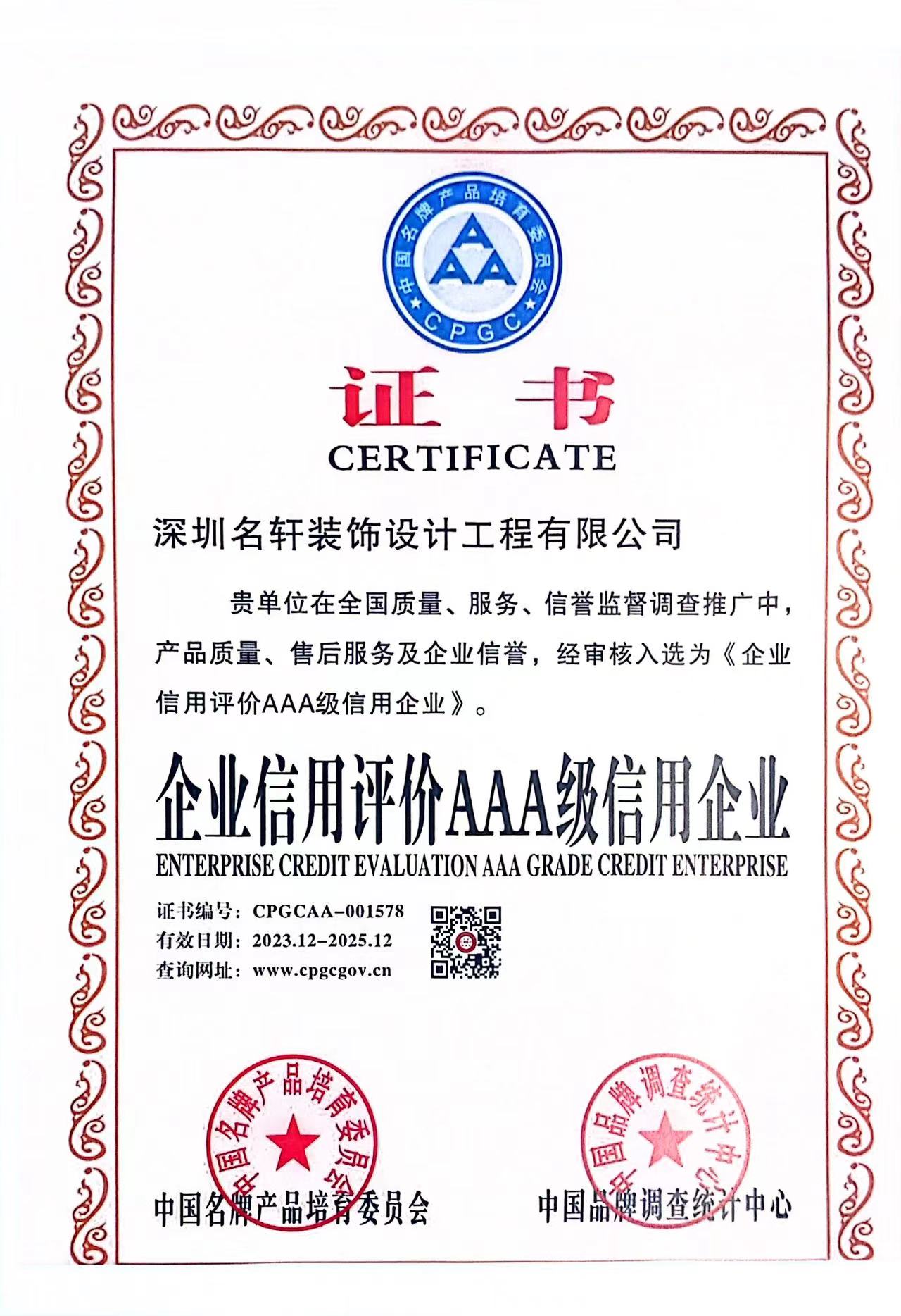 企業信用評價3A級證書