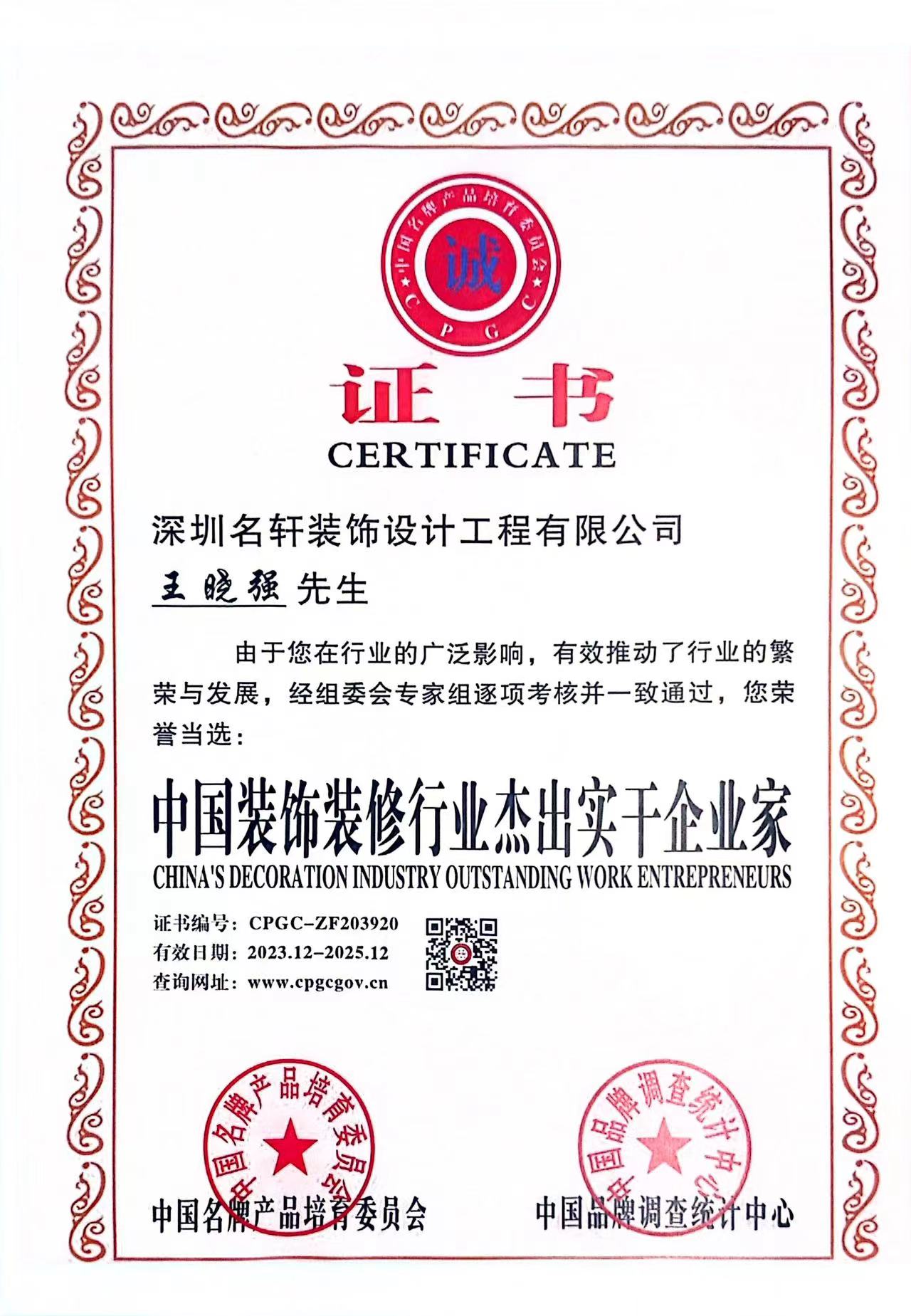 中國裝飾裝修行業杰出實干企業家